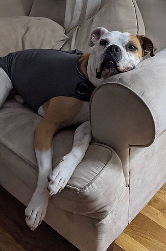 Buster is approximately 2 years old. He is a big boy weighing in at around 70 pounds. If you've been following our available boxers page, you would have noticed that Buster had been adopted. Unfortunately, the adoption didn't work out and he is once again available. He will make a great companion for empty nesters or families with teen children. He is incredibly obedient and will bond to his adoptive family very quickly. We are recommending that he be the only dog in the household. He is excellent on leash and will make someone a great lifelong companion. As you can see from his pictures below, he can be quite the couch potato.